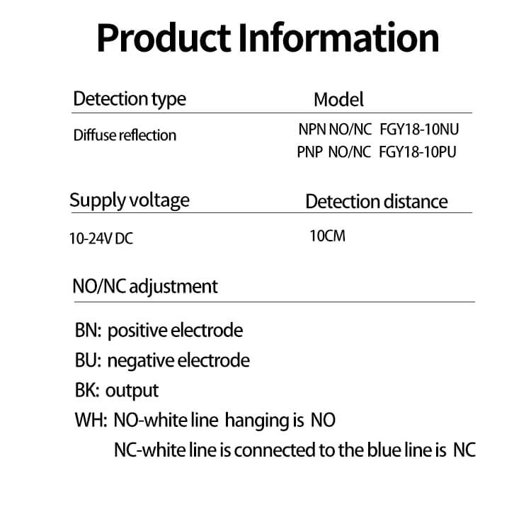 Penderia FGY18-10NU cemerlang dalam keupayaan pengesanannya, menawarkan jarak pengesanan mengagumkan yang disesuaikan untuk disesuaikan dengan pelbagai aplikasi. Sama ada anda memerlukan ukuran yang tepat dalam sistem automasi, kawalan jentera atau mana-mana tetapan industri lain, sensor ini akan memberikan hasil yang boleh dipercayai dan tepat.