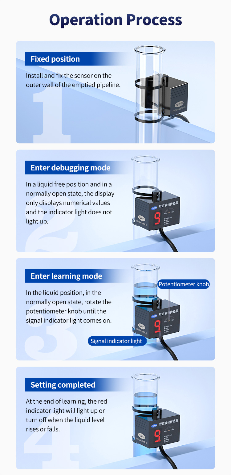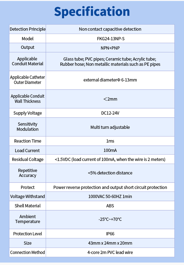 FKG24-13NP-S Pengesanan Tahap Rendah Kapasiti Tube Tahap Sensor Prinsip kapasitif, tidak mudah dipengaruhi oleh bahan paip