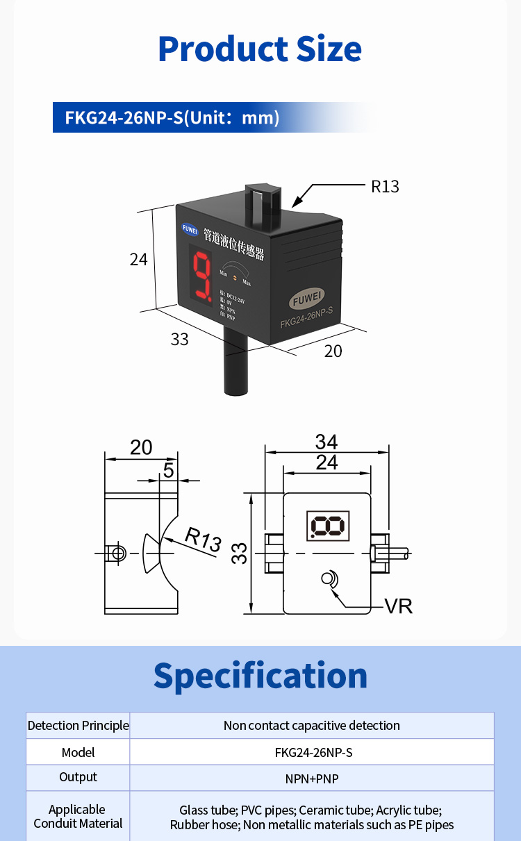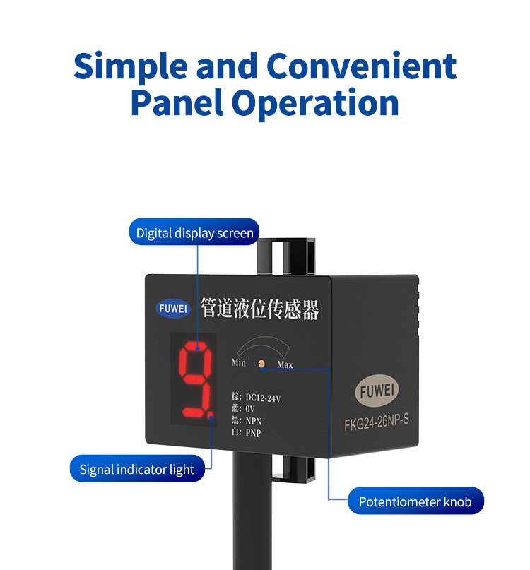 FKG24-26NP Siri Pipa Cecair Tahap Sensor Prinsip kapasitif, tidak mudah dipengaruhi oleh bahan paip