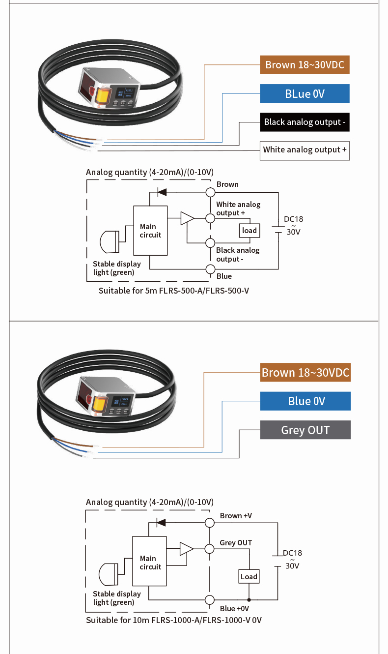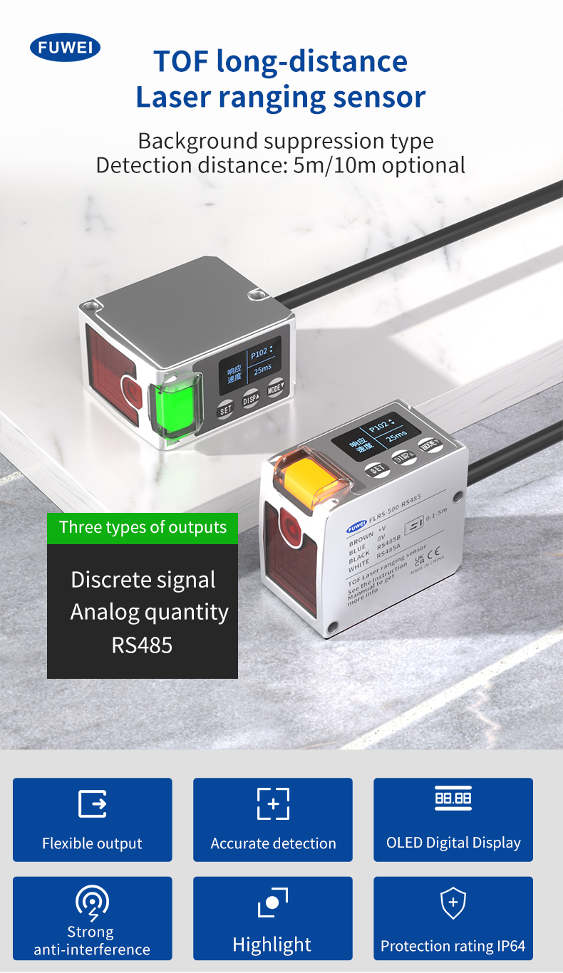 Memperkenalkan Sensor Jarak Laser Siri FLRS, penyelesaian prestasi tinggi yang direka bentuk untuk pengukuran jarak jauh yang tepat dan boleh dipercayai. Menggunakan teknologi masa lanjutan (TOF) dengan penindasan latar belakang, sensor ini menawarkan julat pengesanan fleksibel sehingga 5m atau 10m, menjadikannya sesuai untuk pelbagai aplikasi perindustrian. Direka dengan keupayaan anti-interference yang unggul dan ciri-ciri EMC yang sangat baik, ia secara berkesan menentang gangguan elektromagnet dan elektrostatik, memastikan data yang konsisten dan boleh dipercayai dalam persekitaran yang mencabar.