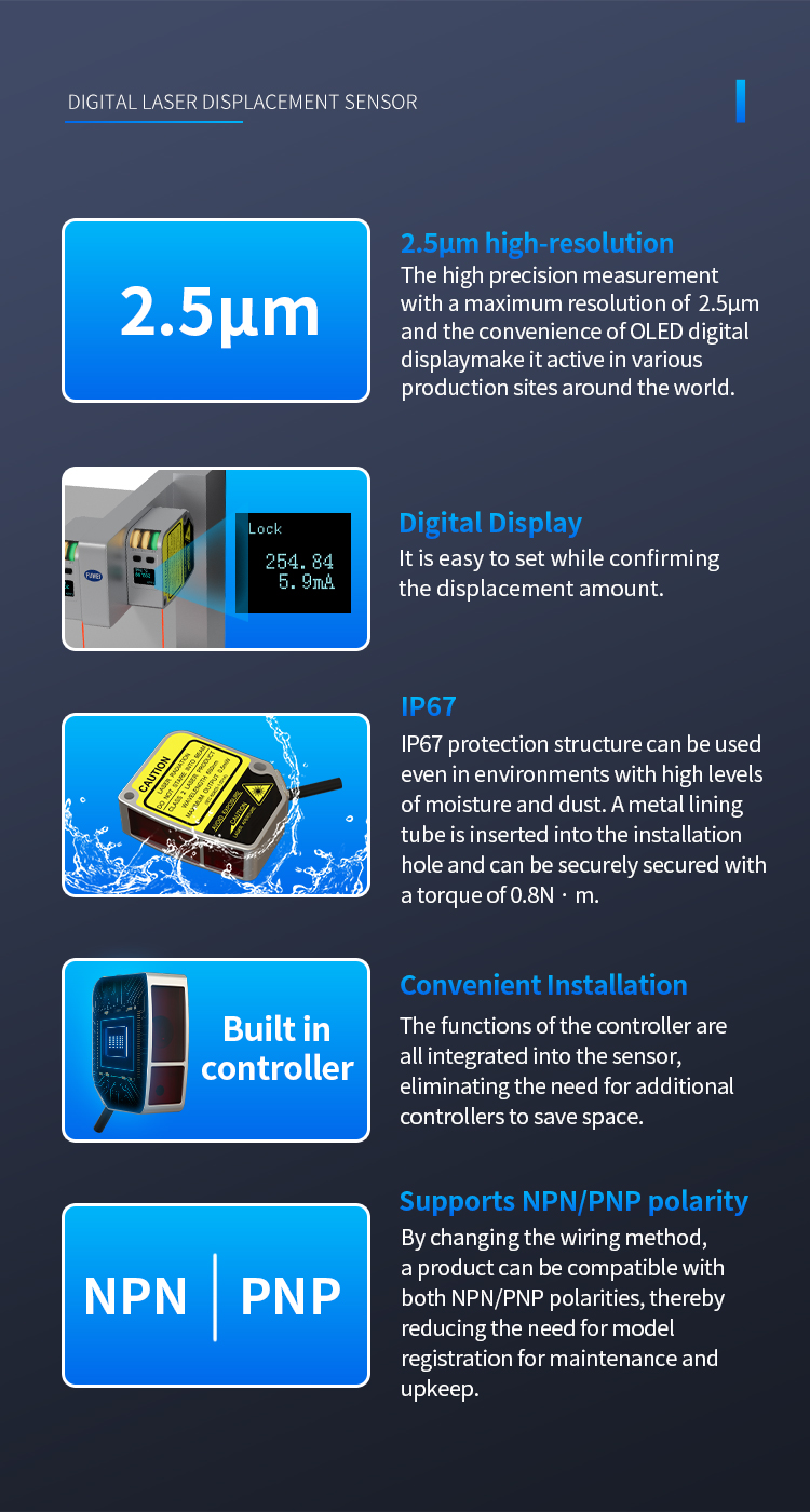 Penderia CMOS berketepatan tinggi dan algoritma unik, dengan ketepatan linear ultra tinggi, mencapai ukuran tanpa sentuhan dan bebas haus.