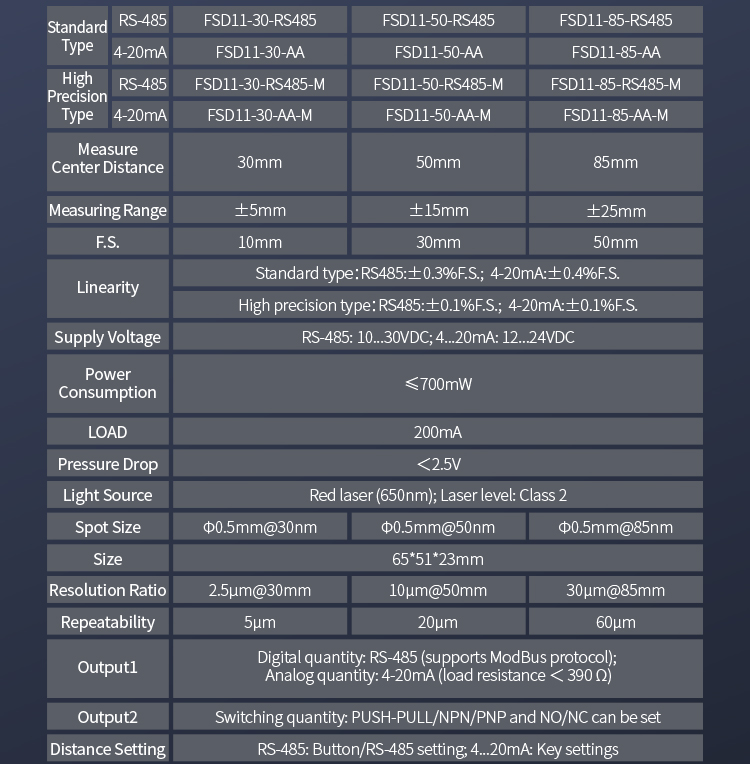 China Penderia anjakan Laser ketepatan tinggi 0.01mm Pembekal, Pengilang - Harga Terus Kilang - Model Fuwei: FSD11-85-RS485-M Penderia Julat Laser 20 meter