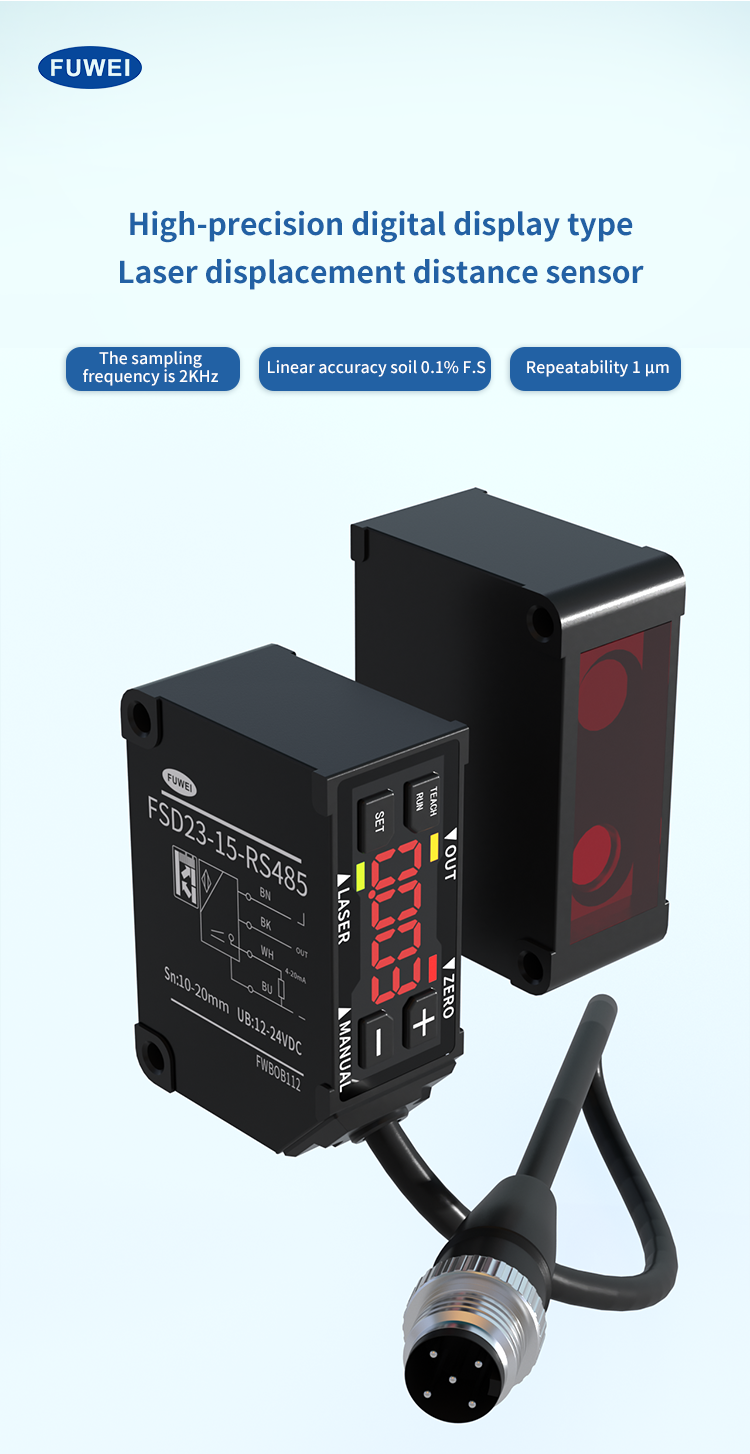 Dalam bidang ketepatan tinggi seperti pembuatan ketepatan, pembungkusan semikonduktor dan pemeriksaan automotif, keupayaan pengesanan sensor anjakan laser secara langsung menentukan kualiti produk dan kecekapan pengeluaran. Dalam menghadapi sensor tradisional dengan pelbagai pengesanan terhad, kebolehsuaian alam sekitar yang lemah, kehidupan pendek dan titik sakit yang lain, Fu Wei Intelligence melancarkan Revolusi Sensor anjakan laser siri FSD23s,Dengan jarak 10-250mm ultra-seluruh, ± 0.1% F.S. Ketepatan linear dan perlindungan peringkat IP67 dari tiga kelebihan teras, untuk mentakrifkan semula sempadan prestasi peralatan pemeriksaan perindustrian.