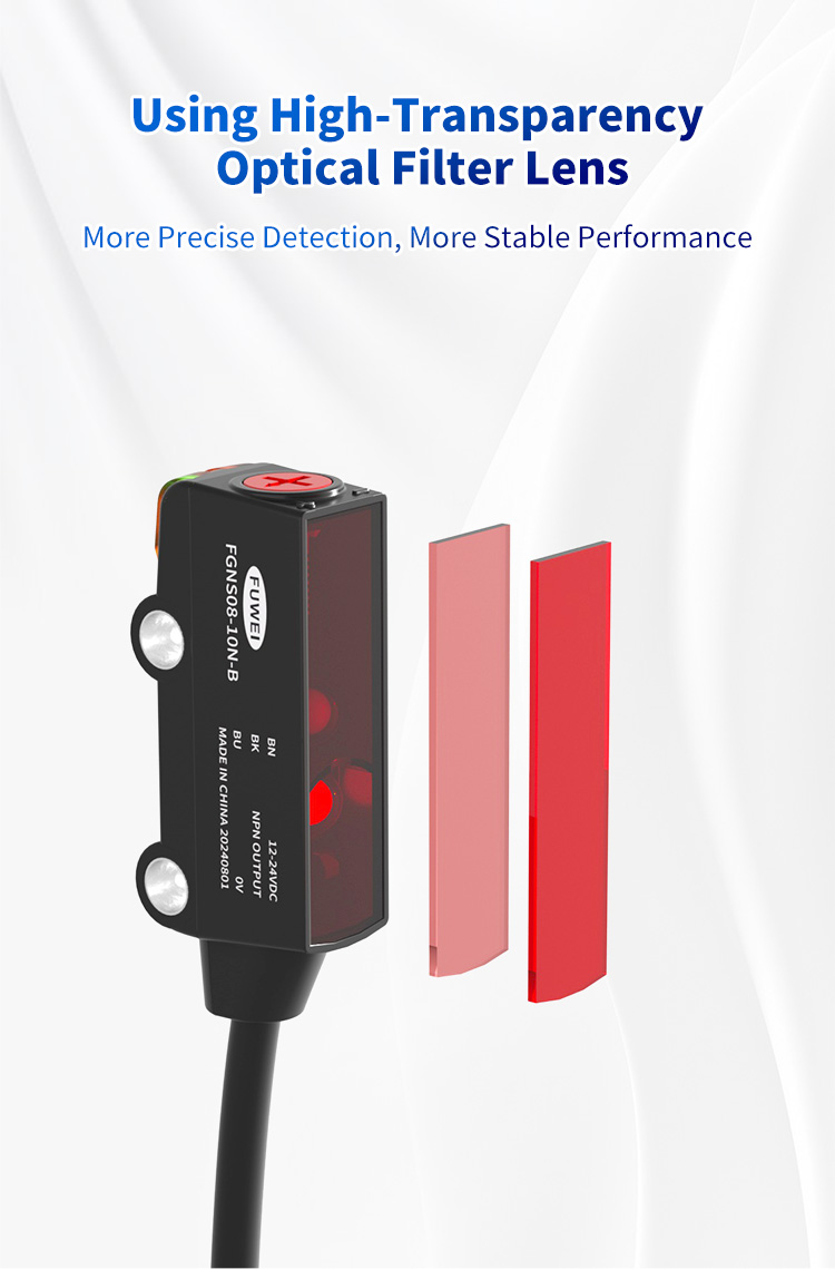 Dalam persekitaran perindustrian yang kompleks, pelbagai gangguan cahaya dan elektromagnet sering menjejaskan ketepatan pengesanan sensor. Siri FGNS08-08 menggunakan kanta penapis transmisi tinggi khas yang berkesan menapis cahaya ambien dan gangguan elektromagnet, memastikan sensor hanya menerima isyarat pengesanan yang sah.