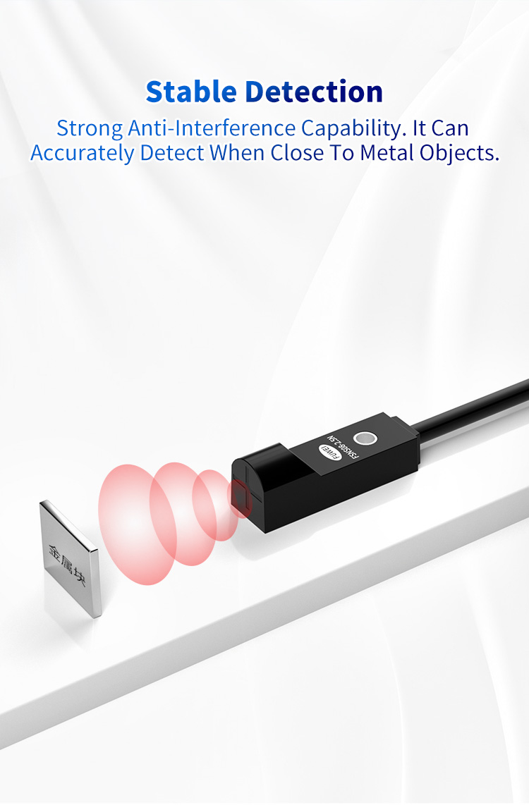 Dengan penarafan IP67, ia dilindungi daripada kemasukan air dan habuk. Sensor menawarkan pengesanan objek logam yang stabil dan tepat dengan keupayaan anti-gangguan yang kuat. Ia amat sesuai untuk pelbagai aplikasi, termasuk kedudukan dulang logam, pengesanan bingkai cakera, pengesanan laluan syiling dan pengesanan cam.