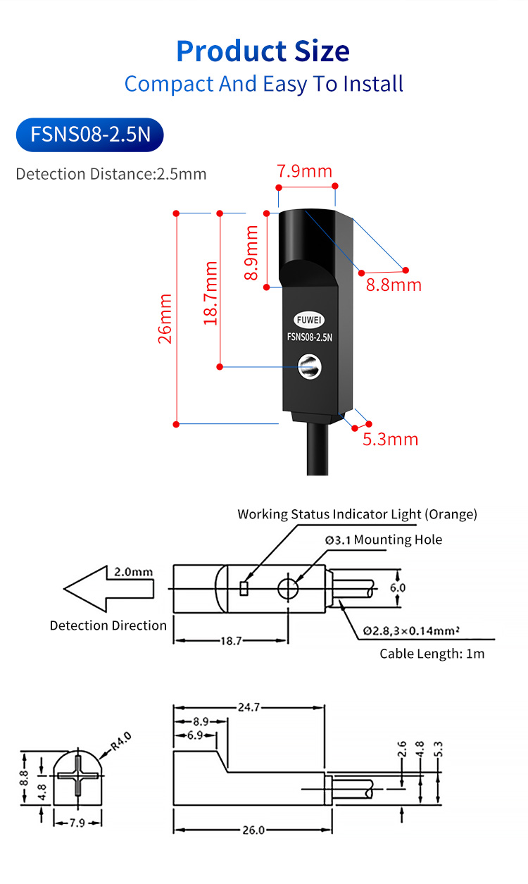 Sama ada aplikasi anda memerlukan kedudukan dulang logam yang tepat, pengesanan bingkai cakera yang boleh dipercayai, pengesanan hantaran syiling yang tepat atau pengesanan cam kritikal, FSNS08-2.5N ialah penyelesaian serba boleh dan boleh dipercayai yang boleh anda harapkan. Teruskan membaca untuk meneroka spesifikasi terperinci dan temui cara penderia ini boleh mengoptimumkan proses automasi anda.