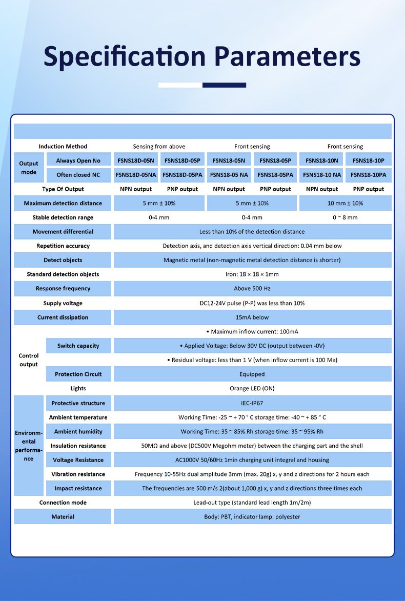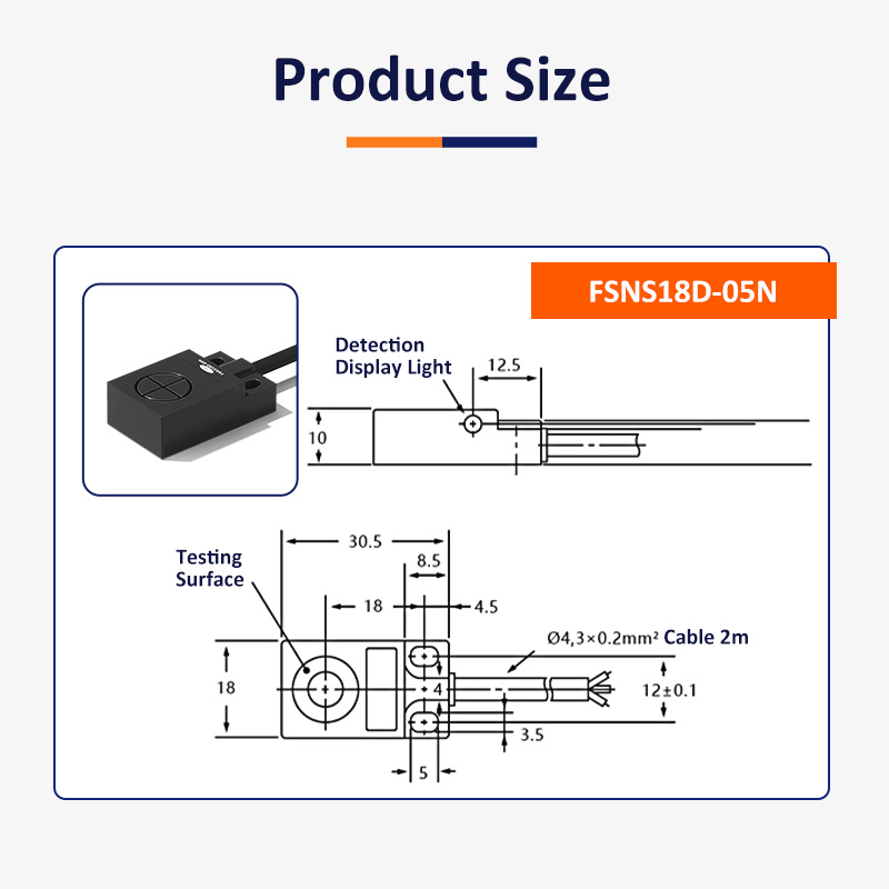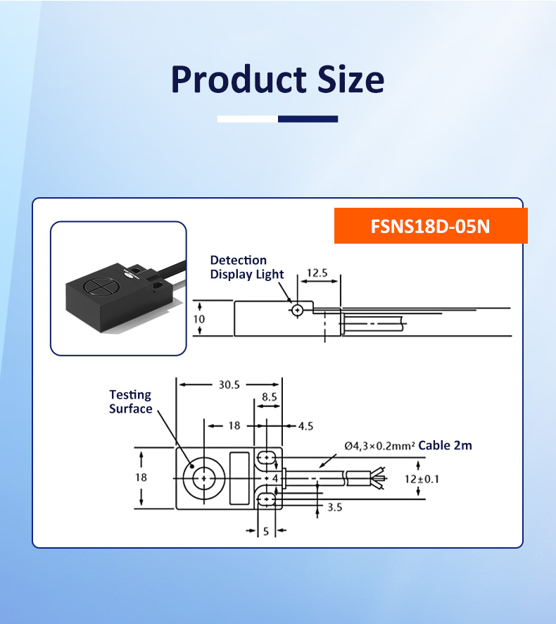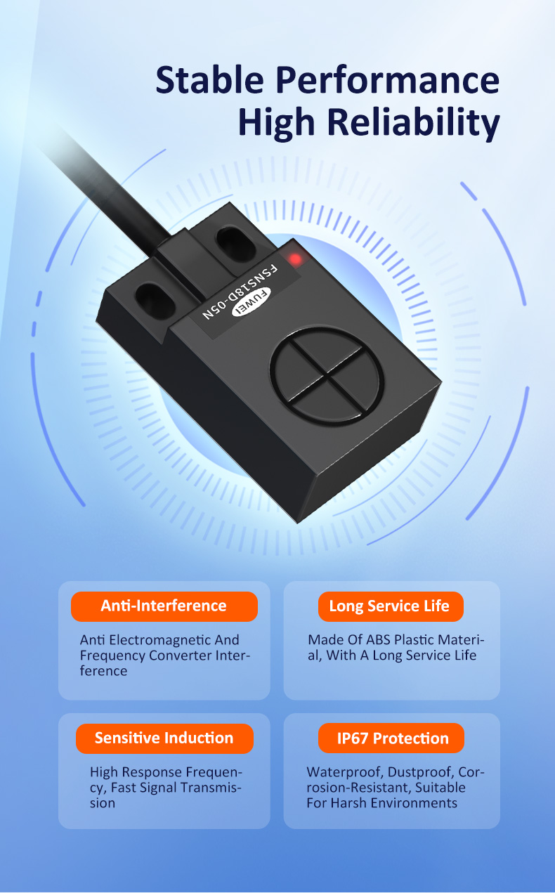Sensor jarak dekat FSNS18D-05 menyampaikan pengesanan yang stabil dan sangat boleh dipercayai dengan julat penderiaan 5mm yang tepat. Direkayasa dengan cip pintar terbina dalam, ia memastikan kedudukan yang tepat dan tindak balas yang cepat untuk menuntut aplikasi automasi industri.
