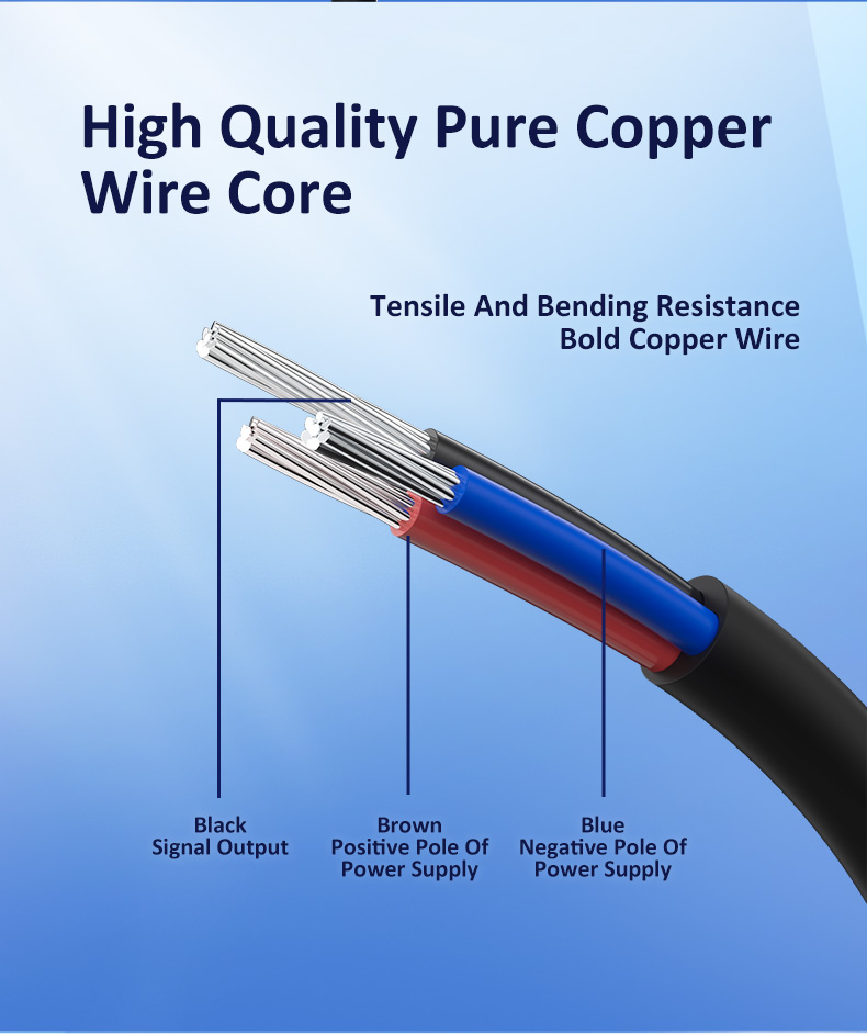 A: Ya, sensor dilengkapi dengan kabel teras tembaga tulen yang berkualiti tinggi dan berkualiti tinggi. Panjang standard biasanya 2 meter. Panjang tersuai boleh didapati atas permintaan.